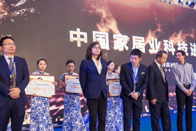 ▲欧董欧董上台接受“中国家居业科技进步奖表彰”荣誉