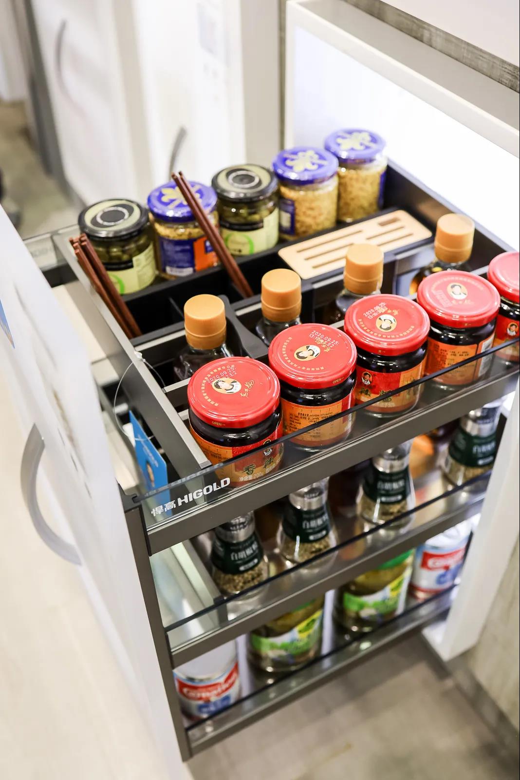 从产品赋能方面,作为17年来以原创设计著称的功能五金行业领军品牌,悍高坚持以原创驱动创新,全面提升产品力。悍高全方位展示了从厨房收纳五金、衣柜收纳五金,门窗五金、基础五金等一系列全屋定制家居五金,实现一站式解决家居五金方案。
