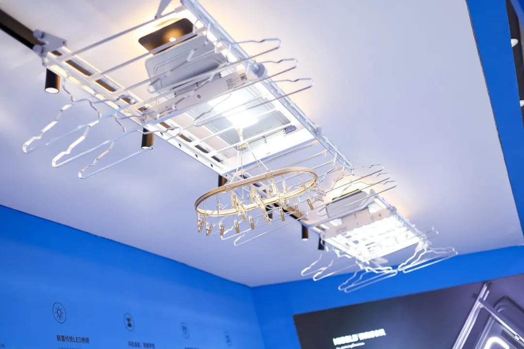 悍高展厅门口色彩鲜艳的智能晾衣机墙,一眼惊艳 香蕉视频高清播放,让众多参展观众驻足了解。