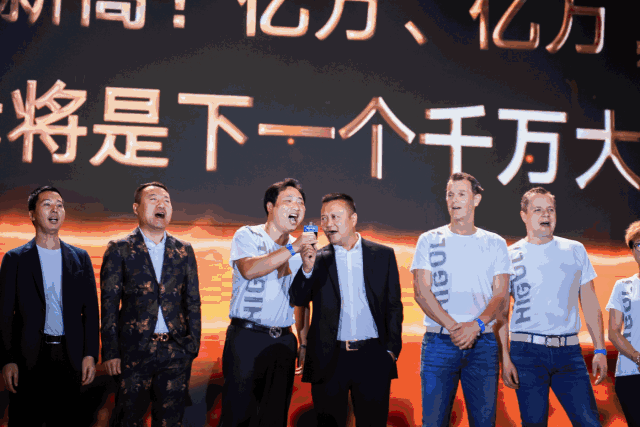 晚宴上,悍高集团董事长欧锦锋与公司高管登台举杯同庆,